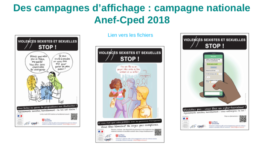 Fondé en 2018 par l’Association nationale des études féministes (ANEF), la CPED et JuriSup, notre réseau propose une série de modules de formation destinés aux établissements d’ESR : comprendre les mécanismes des violences, construire un dispositif d’écoute et d’accompagnement, accueillir les témoignages des victimes…